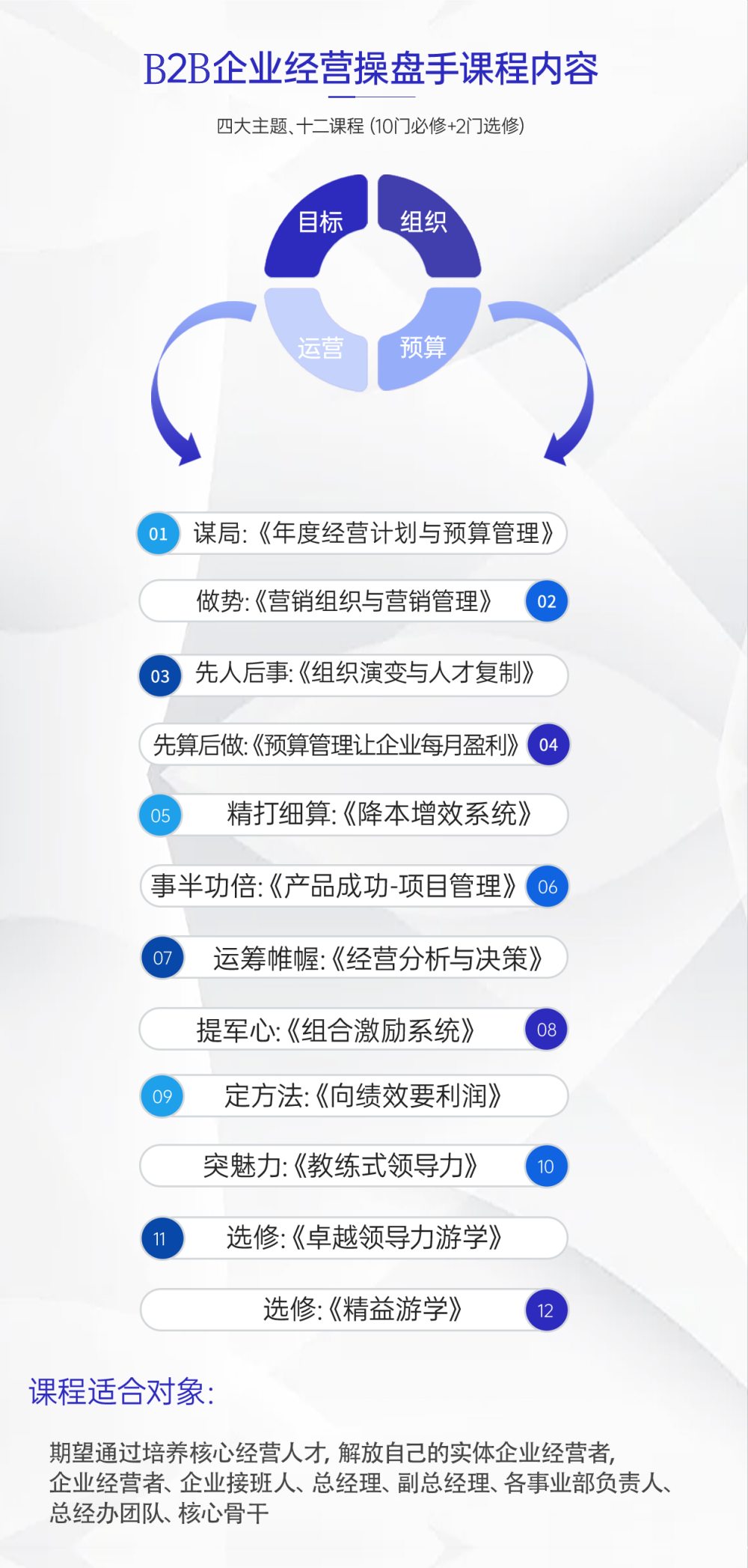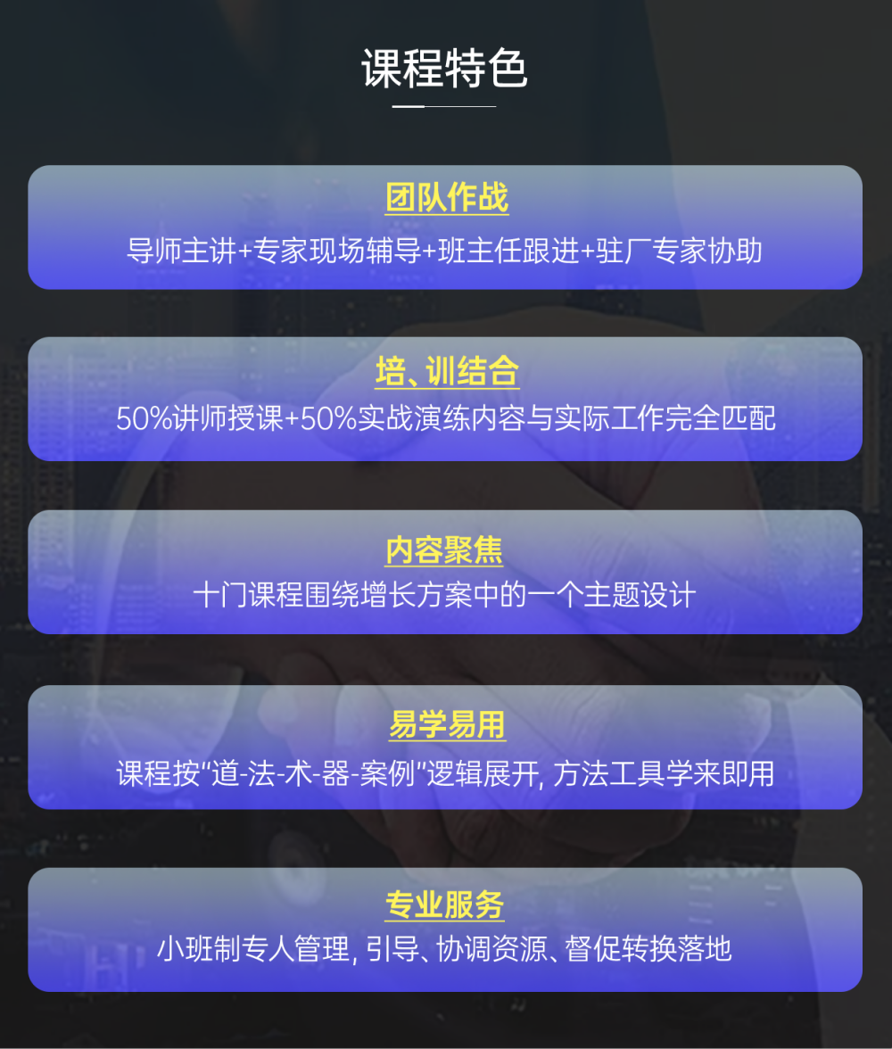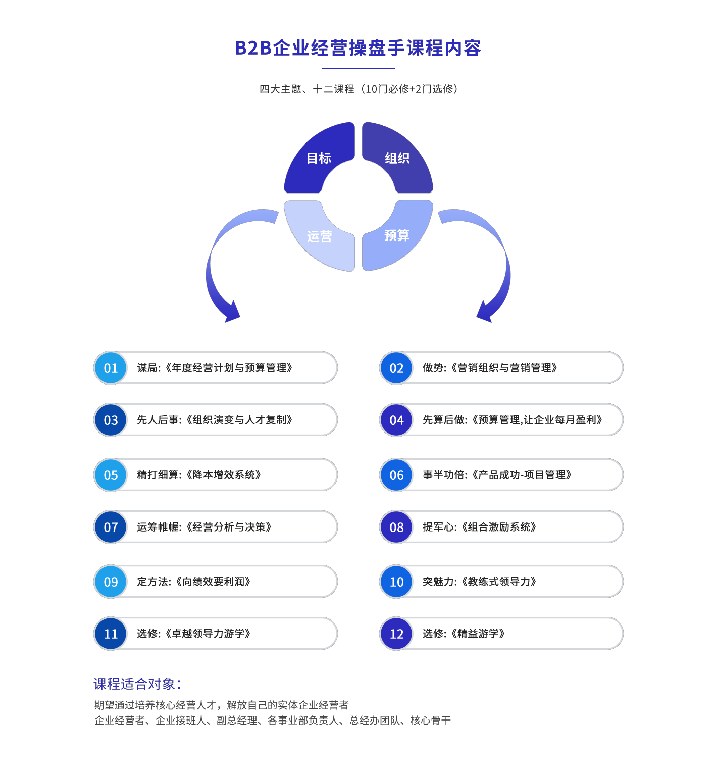 用系統(tǒng)、實效、落地的課程,把核心管理人員培養(yǎng)為能打勝仗的經(jīng)營者