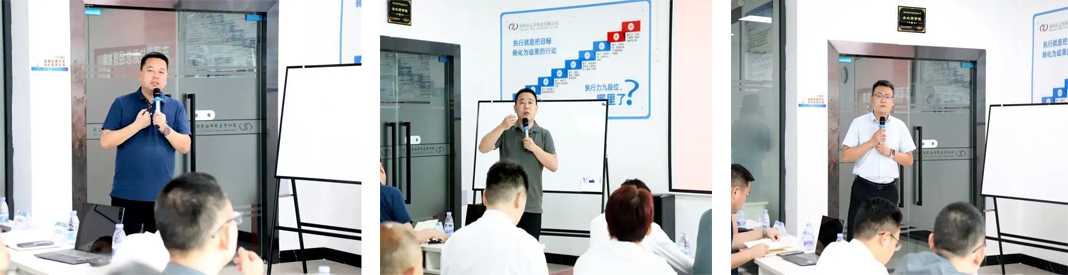 志澤科技王總、于總和唐總分別就各自主管模塊的變革情況做了匯報(bào),指出了目前存在的不足,明確了變革的下一步重點(diǎn)內(nèi)容,并希望與遠(yuǎn)大方略老師攜手進(jìn)行針對性的專業(yè)改善。