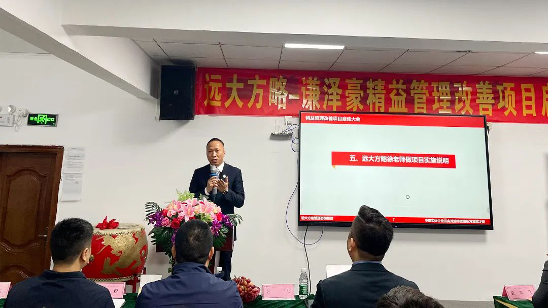 會議上,項(xiàng)目組老師首先向謙澤豪管理團(tuán)隊(duì)對遠(yuǎn)大方略的信任表示感謝,企業(yè)經(jīng)營的本質(zhì)是以客戶為中心,圍繞客戶價(jià)值去建團(tuán)隊(duì)、建流程、搭體系,為客戶創(chuàng)造更大價(jià)值才能留住客戶,這也是此次企業(yè)開啟項(xiàng)目的核心。遠(yuǎn)大方略項(xiàng)目總監(jiān)強(qiáng)調(diào)了此次項(xiàng)目的兩個(gè)重要思想,一是全員參與,所有部門所有員工都要參與此次改善;第二個(gè)就是要持續(xù)改善,從量變到質(zhì)變,它有一個(gè)過程,需要我們持續(xù)做下去才會發(fā)生質(zhì)的改變。
