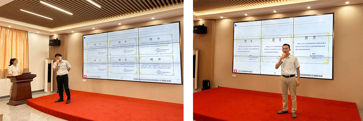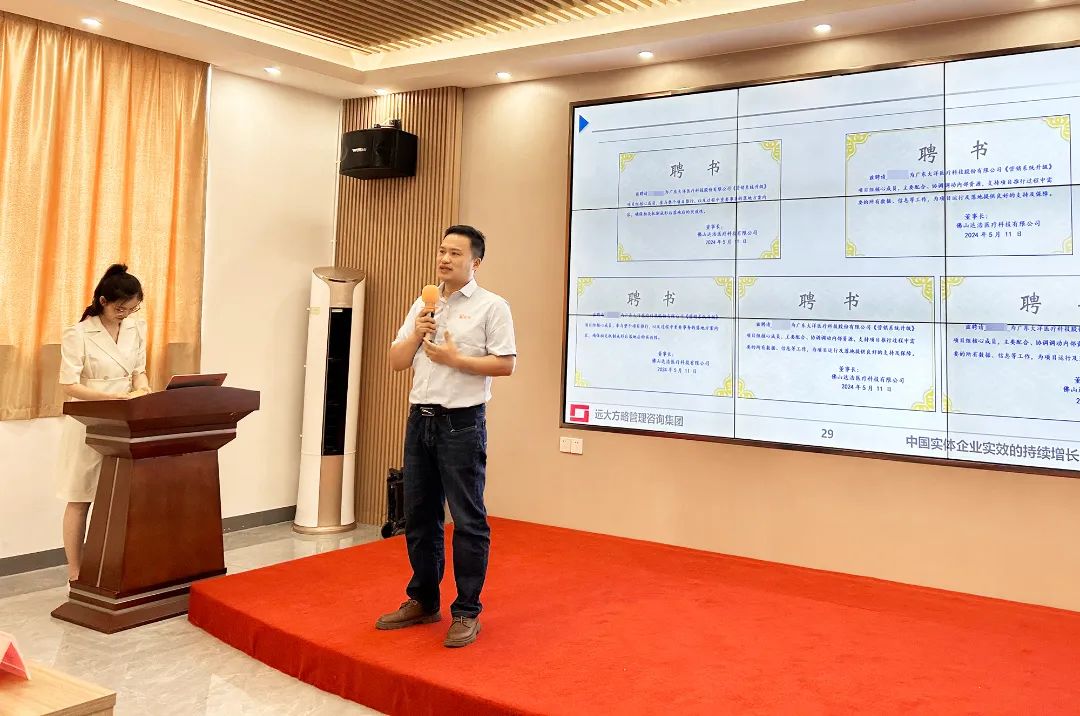 黃董事長宣布了一系列有力措施,以支持集團《營銷管理系統(tǒng)》咨詢項目的順利推進。并向遠大方略項目組頒發(fā)了《授權書》,這一舉措不僅彰顯了大洋集團對咨詢項目的高度重視,也體現(xiàn)了集團開放接受專業(yè)指導的決心。