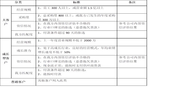 (4) 建立深圳市譽恒達科技有限公司客戶分類分級標(biāo)準(zhǔn),具體標(biāo)準(zhǔn)如下: