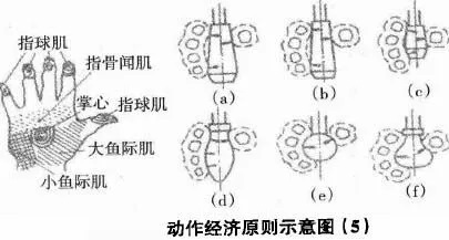 圖下(a)、(b)、(e)三種手柄設(shè)計(jì)的形式較好;(d)、(e)、(f)三種形式與掌心貼合面大,只適合作為瞬間和受力不大的操縱手柄。
