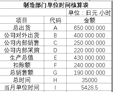 核算制度里有個(gè)附加價(jià)值。這個(gè)附加價(jià)值就是從銷售額中減去生產(chǎn)產(chǎn)品所用的材料費(fèi)、機(jī)械設(shè)備折舊費(fèi)等,即減去除勞務(wù)費(fèi)用之外的所有費(fèi)用所得到的數(shù)字。那么,自己究竟創(chuàng)造出來(lái)多少附加價(jià)值?為了讓大家很容易的就明白這一點(diǎn),提出來(lái)單位時(shí)間附加價(jià)值這一概念。