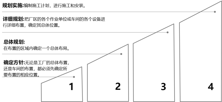 我們主要選取具代表性的布局方法--系統(tǒng)布置設(shè)計(jì)SLP法,通過如下階段的策劃與落地來開展項(xiàng)目: