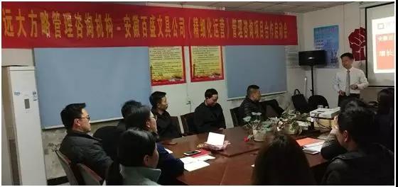 2019年4月,安徽百盛文具有限公司(以下簡稱“百盛文具”)攜手遠(yuǎn)大方略遠(yuǎn)大方略管理咨詢公司啟動《精細(xì)化運營》管理改善項目。遠(yuǎn)大方略項目總監(jiān)程波老師,項目組長唐光輝老師入駐百盛文具。通過與百盛文具公司核心團隊的探討,本次咨詢項目主要圍繞會議模式變革、提升庫存管理水平、組織建設(shè)、交付系統(tǒng)、效率提升等內(nèi)容展開,達(dá)到促進團隊成長、降本增效的管理變革目的。