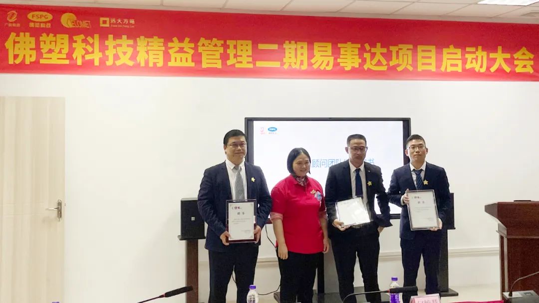 鐘總還為遠大方略項目組頒發(fā)了個人聘書及團隊授權書,為精益管理推進辦公室成員和精益管理專項工作組組長頒發(fā)了個人任命書。精益管理專項工作組組長簽署了《佛塑科技易事達公司精益管理項目承諾書》,并承諾帶領小組全體成員全力以赴,達成精益管理KPI目標。
