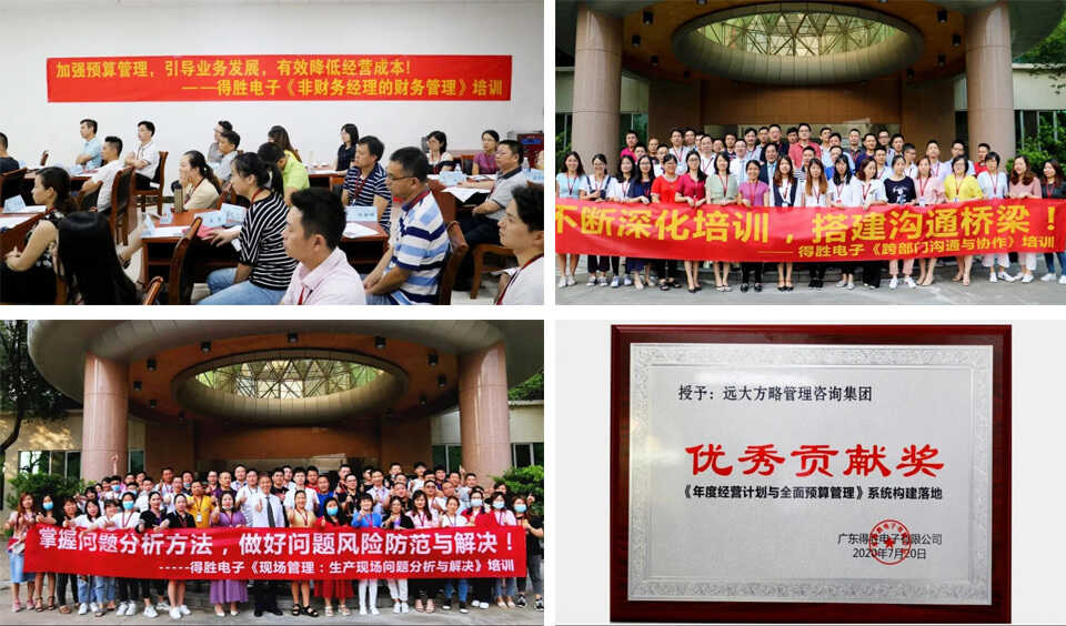 得勝電子與遠(yuǎn)大方略合作咨詢(xún)項(xiàng)目2期,并持續(xù)開(kāi)展定制化專(zhuān)題培訓(xùn)。沉淀了一套人才培養(yǎng)復(fù)制模式,打造了經(jīng)營(yíng)管理核心團(tuán)隊(duì)(8名),為企業(yè)高速發(fā)展奠定了人才基礎(chǔ);沉淀了一套年度經(jīng)營(yíng)目標(biāo)實(shí)現(xiàn)的經(jīng)營(yíng)管理系統(tǒng),大大地提升了資金周轉(zhuǎn)率和庫(kù)存周轉(zhuǎn)率,助力企業(yè)實(shí)現(xiàn)了營(yíng)業(yè)額和利潤(rùn)的雙增長(zhǎng)。