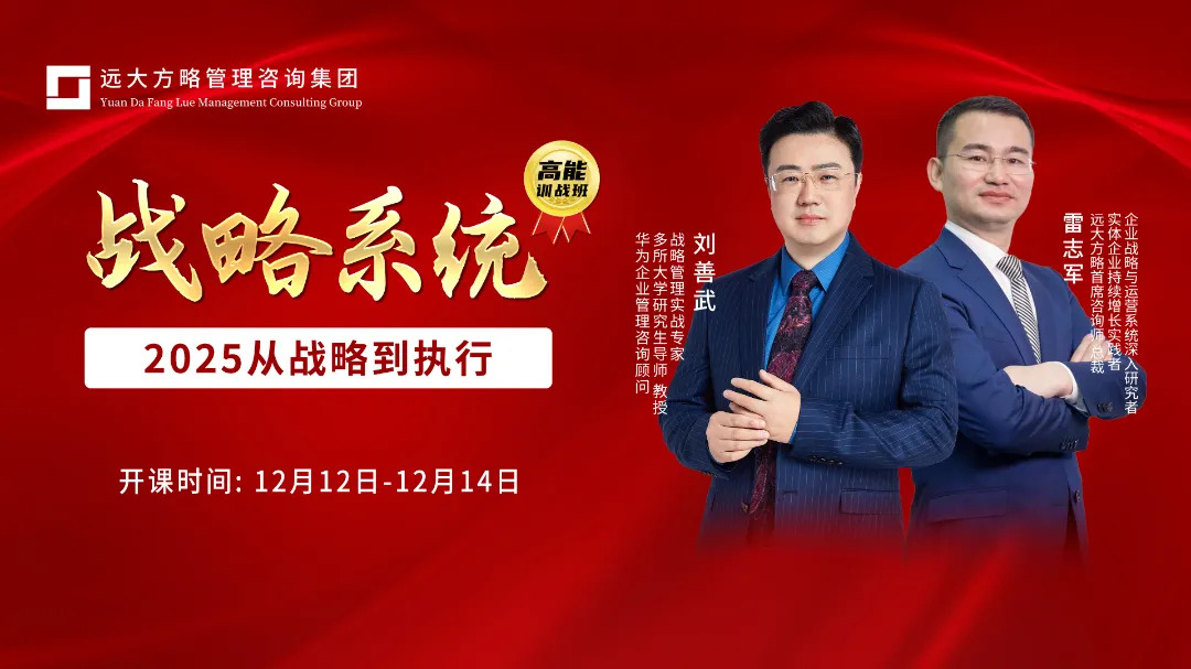 為幫助企業(yè)掃清戰(zhàn)略迷霧,遠(yuǎn)大方略每年都會(huì)推出戰(zhàn)略系統(tǒng)課程,10月戰(zhàn)略課程現(xiàn)場爆滿,11月21日-23日再次舉行《戰(zhàn)略系統(tǒng)-2025從戰(zhàn)略到執(zhí)行》課程,現(xiàn)場依舊火熱。本次課程由華為企業(yè)管理咨詢顧問劉善武老師全程授課,通過深入剖析戰(zhàn)略的本質(zhì)與執(zhí)行的精髓,為學(xué)員們提供一套從戰(zhàn)略制定到高效執(zhí)行的系統(tǒng)性方法論,幫助企業(yè)實(shí)現(xiàn)戰(zhàn)略性增長。
